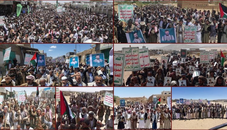 وفي رجوزة والمراشي، توافدت الحشود إلى الساحات في مسيرات حاشدة، أكدت أن الموقف اليمني ثابت لا يتغير، وأن الشعب اليمني حاضر بقوة في مواجهة التحديات.