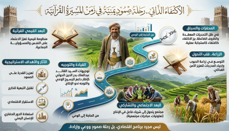 في لحظةٍ تاريخيةٍ فارقة، لم يعد الاكتفاء الذاتي في اليمن مجرد خيارٍ اقتصادي أو شعارٍ مرحلي، بل تحوّل إلى مسار وطني شامل يعكس إرادة الصمود، ويعبّر عن تحوّل عميق في الوعي الجمعي، ففي ظل التحديات المعقّدة والظروف الضاغطة، برز هذا المفهوم بوصفه استجابة عملية وواعية، تستند إلى منظومة قيمية مستمدة من الثقافة القرآنية، وتستهدف تحرير الإرادة الوطنية من التبعية، وبناء قدرة ذاتية قادرة على الاستمرار، إن قراءة هذا التحول تكشف أن الاكتفاء الذاتي في اليمن لم ينشأ من فراغ، بل هو نتاج تفاعلٍ بين الواقع  والمرجعية القيمية والتوجيه القيادي، حيث التقت الحاجة بالوعي، والتحدي بالإرادة، لتتشكل ملامح تجربة فريدة تستحق القراءة والتحليل.